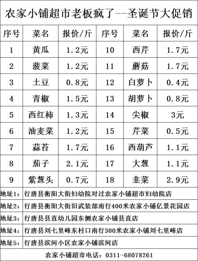 行唐农家小铺超市老板疯了——圣诞节大促销